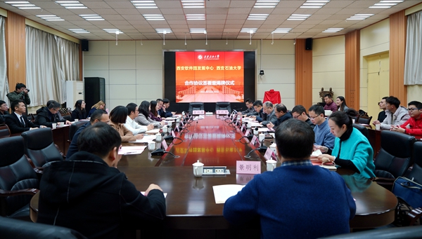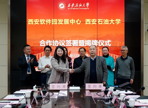 12月10日上午,我校与西安软件园发展中心合作协议签署暨揭牌仪式在雁校区第二会议室举行。西安软件园发展中心副主任张露、西安西软云智信息科技有限公司总经理贾锐、华为技术有限公司华为云陕西运营总监毛江飞、中软国际教育科技股份有限公司政企业务线副总裁邵作杲等一行12人,我校副校长陈军斌出席仪式。仪式由合作发展处副处长林红先主持。