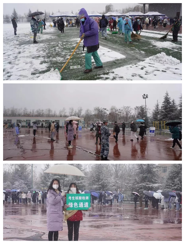 学校各相关职能部门多措并举,全力护考、暖心保障,得到广大考生一致好评。在学校主干道设置指示牌和标识,安排学生志愿者,维护秩序、引导方向,积极服务考生顺利进场。后勤管理处设置午餐绿色通道、临时休息区,校医院开设核酸检测专场,为考生平安顺利考试保驾护航。B、C类考生专班制定考试预案,监考教师身着防护服前往隔离酒店,完成送考上门服务。12月26日,根据最新交通管控情况,我校派出专车接送考生100余人次,贴心服务考生。