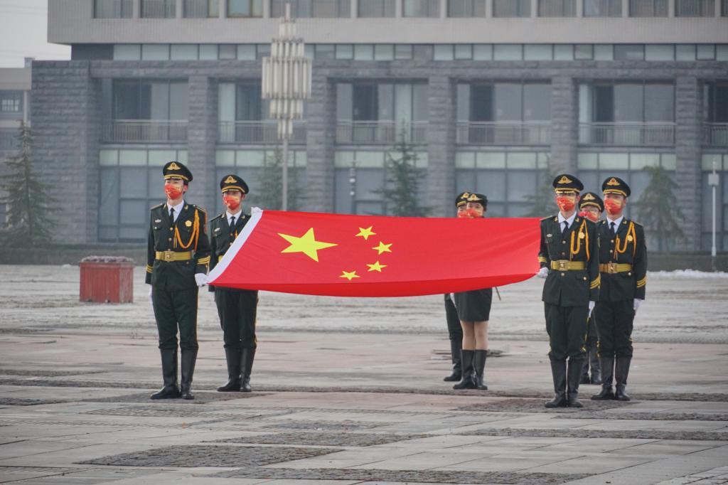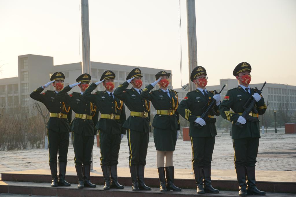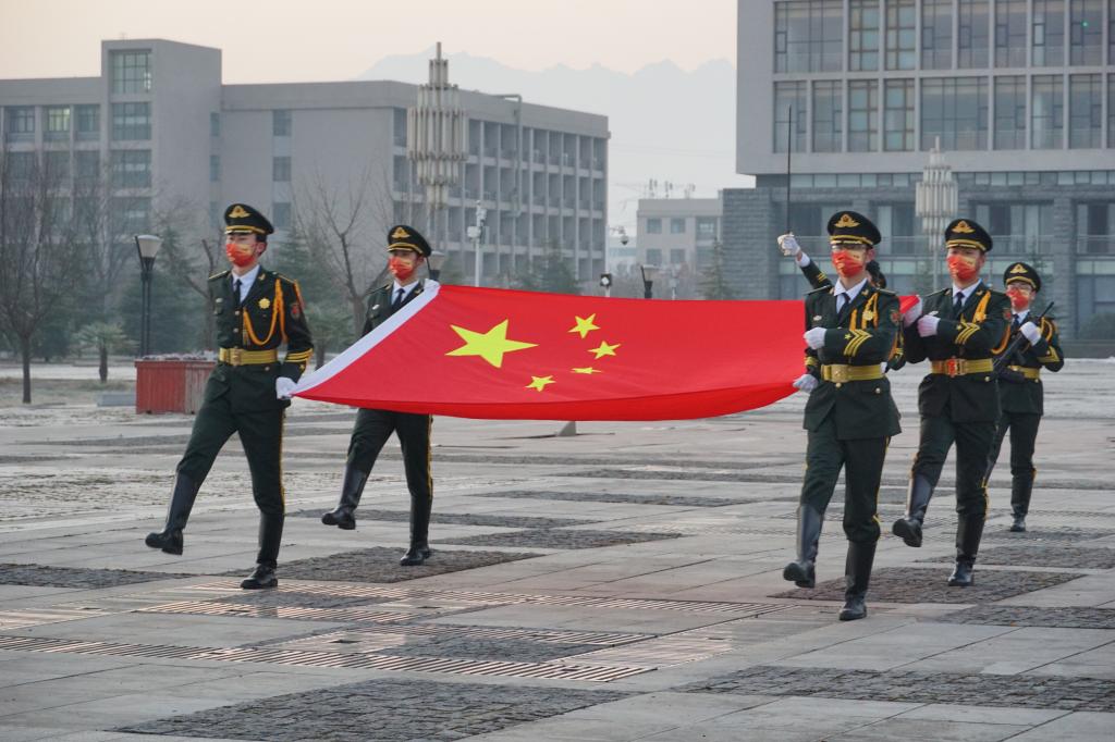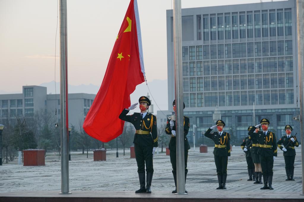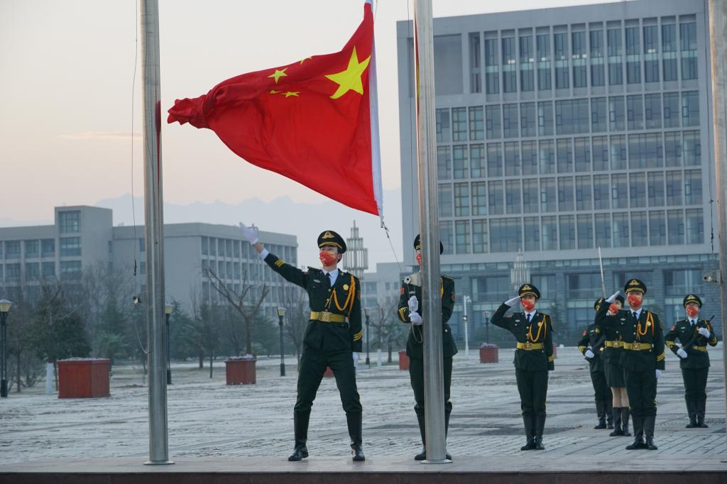 近日,西安疫情形势复杂严峻,正处于防控关键窗口期,为强化爱国主义教育,激发广大青年学生的爱党、爱国自觉,调动广大学生主动投身疫情防控的积极性,凝聚战胜疫情的信心,2022年1月1日上午8时,我校在鄠邑校区图书馆北广场举行以“共同抗疫,爱国力行”为主题的升国旗仪式。全校师生通过网络平台直播观看升旗仪式。