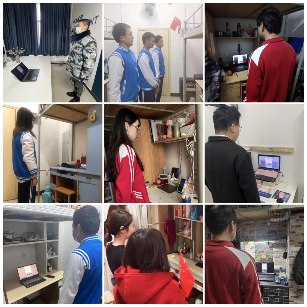 这是一场在特殊时期通过网络直播的升国旗仪式。伴随着激昂的《义勇军进行曲》,我校师生们在宿舍通过观看屏幕中冉冉升起的五星红旗,高唱国歌,行注目礼,表达对祖国的无限热爱与战胜本次新冠疫情的坚定信心。