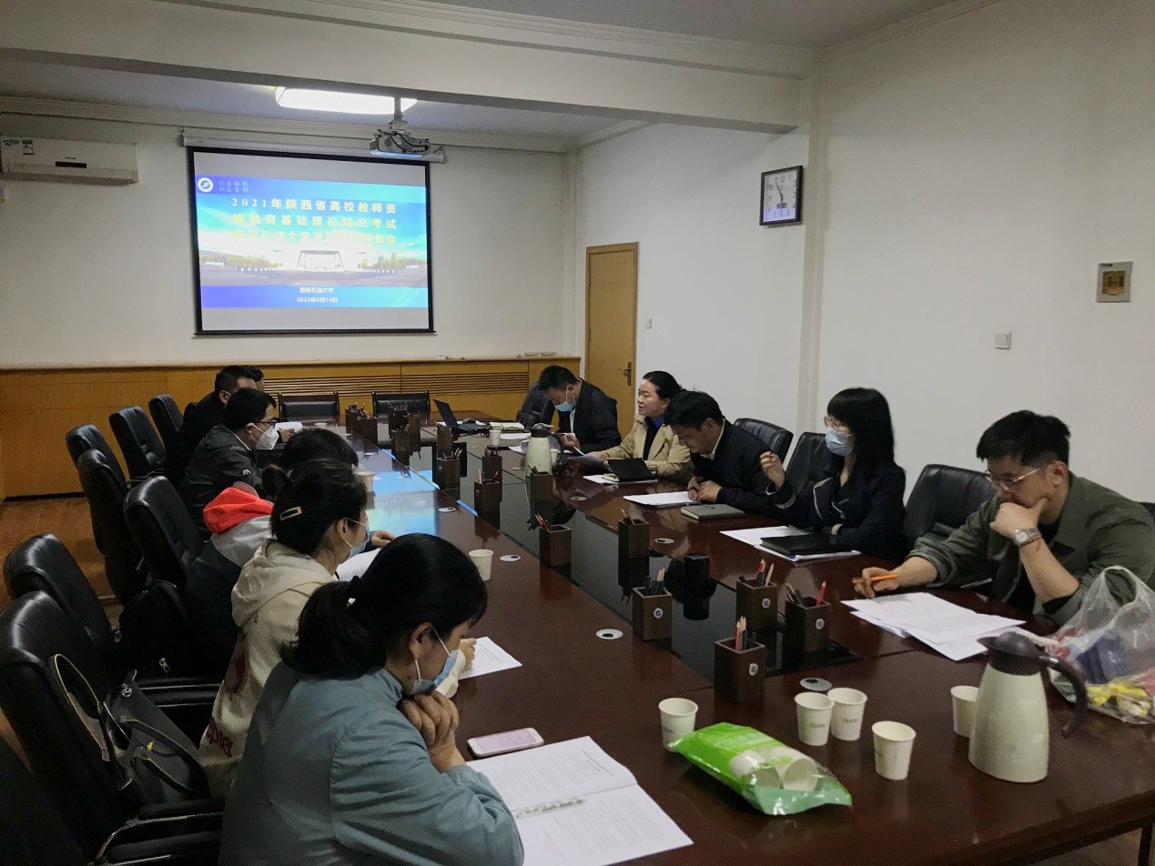 加强组织领导,周密部署落实落细安排。按照视频会要求,学校制定了考试工作方案,成立了学校考点工作领导小组、考务工作领导小组以及考点保障、疫情防控、考场考务、考场安保等专项工作组。考前,组织考场考务监考、疫情防控和考点安保等人员召开预备会。会上,教师工作部负责人就2021年陕西省高校教师资格教育基础理论知识考试相关文件做了解读,对我校考点情况做了介绍,并就严格考场考务、监考纪律等做了要求,希望参会人员细化分工、落实责任,确保考试的顺利进行。