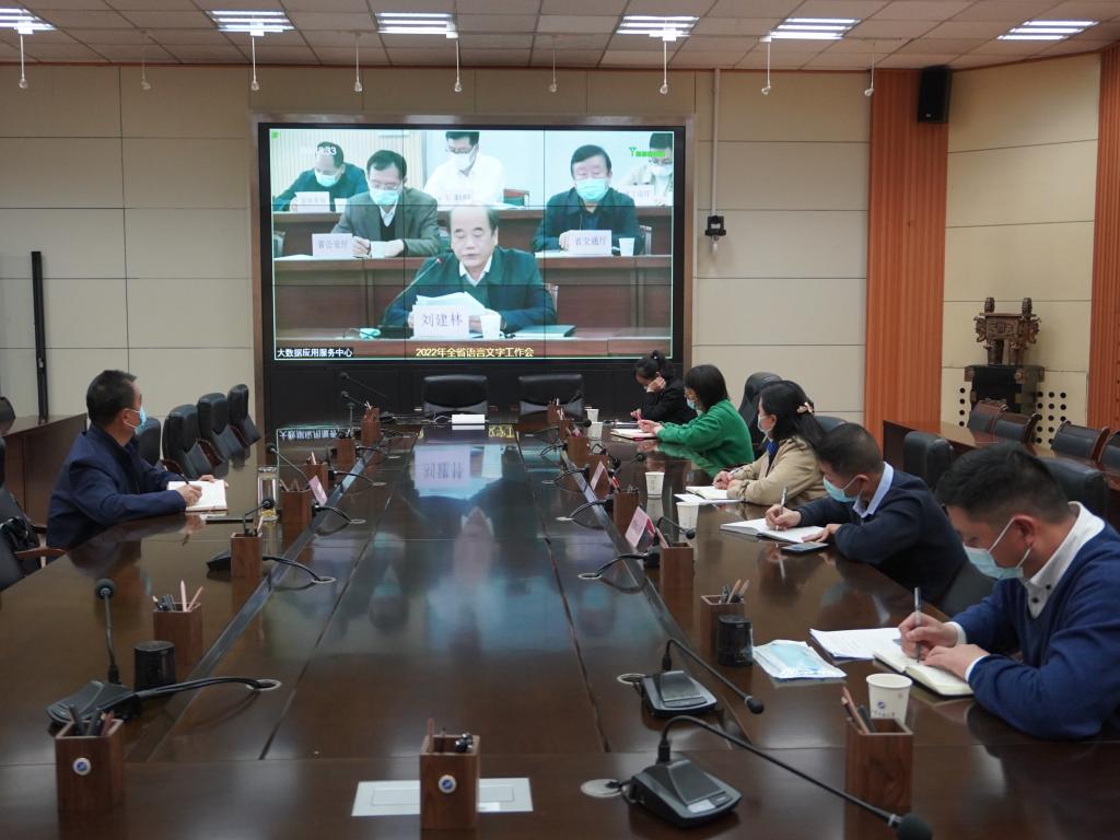 4月19日下午,2022年全省语言文字工作视频会以视频会议形式召开,主会场设在省教育厅。副省长、省语委主任方光华出席会议并讲话,省政府副秘书长张军林主持会议。我校在雁塔校区第二会议室设立分会场,副校长程永清,党政办、教师工作部和人文学院负责人及相关专业教师参加会议。
