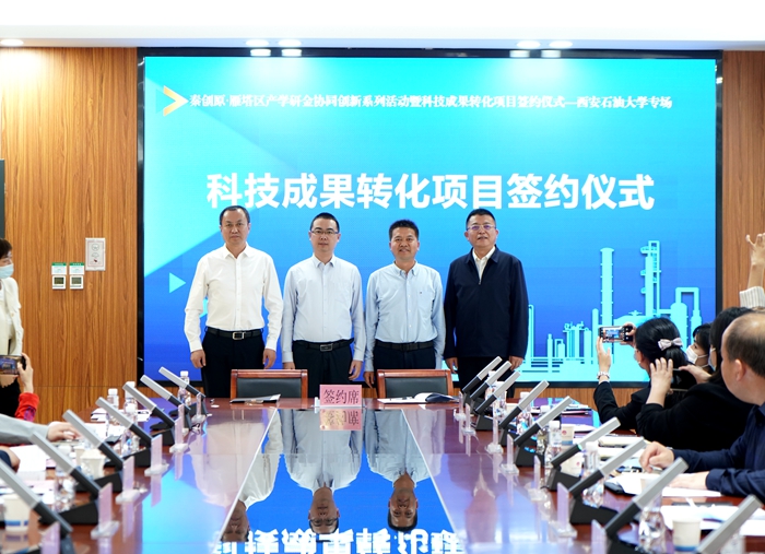 2022年4月25日,我校与雁塔区人民政府、西安市科学技术局联合主办的“秦创原·雁塔区产学研金协同创新系列活动暨科技成果转化项目签约仪式—西安石油大学专场”在雁塔区政务服务中心隆重举行。张荣军副校长出席活动,学校科技处负责人及科研教师代表参加活动。