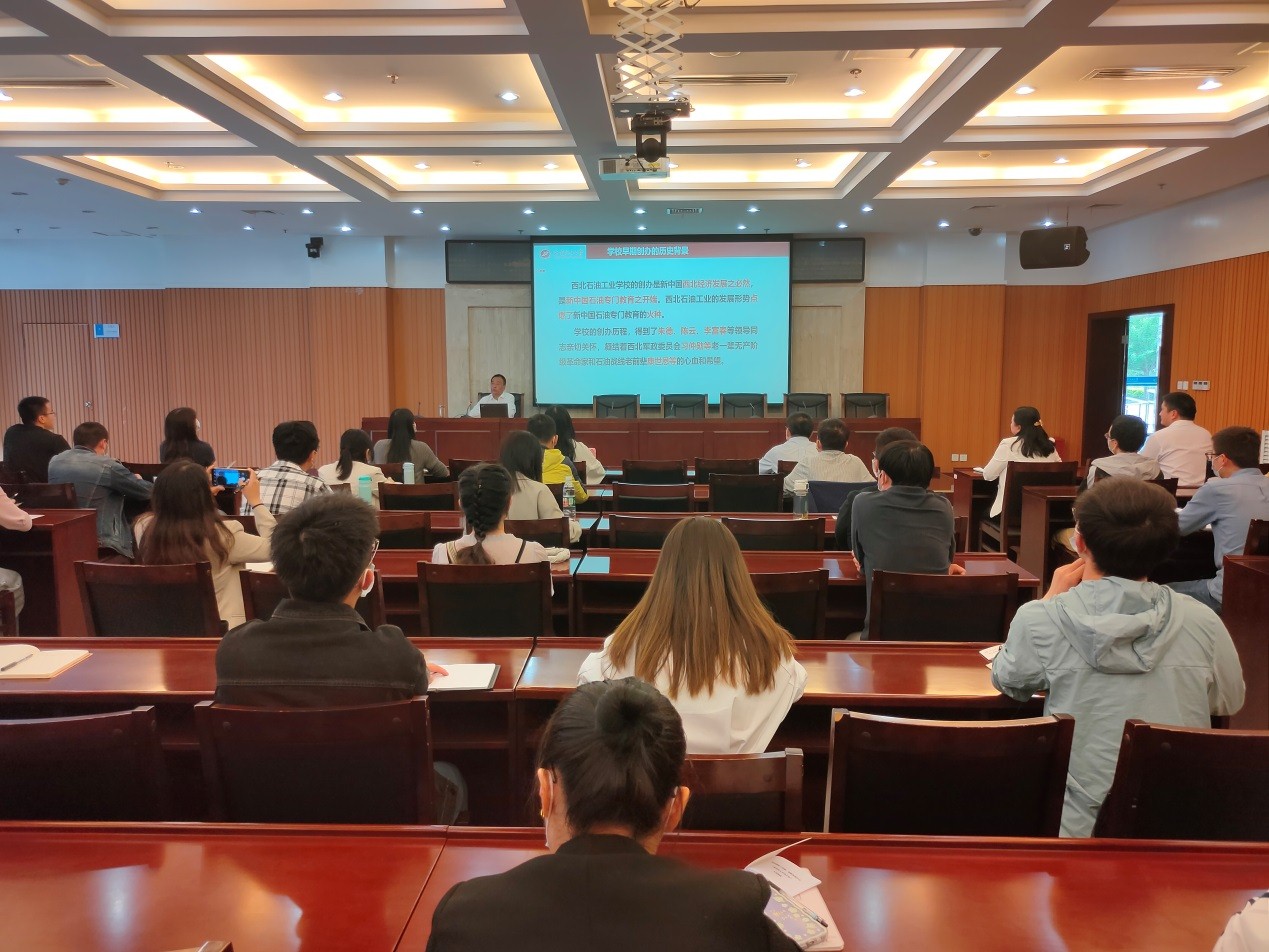 仪式结束后,程永清以学校创办和发展为主线,梳理了学校历史发展脉络及办学成就。他首先详细讲述了学校早期成立的历史背景。程永清指出,学校的创办是在朱德、陈云、李富春等老一辈无产阶级革命家的亲切关怀下,由中央燃料工业部石油管理总局在西北石油干部学校的基础上创办的,学校创办凝结着习仲勋、康世恩等老一辈无产阶级革命家和石油战线老前辈的心血和希望。