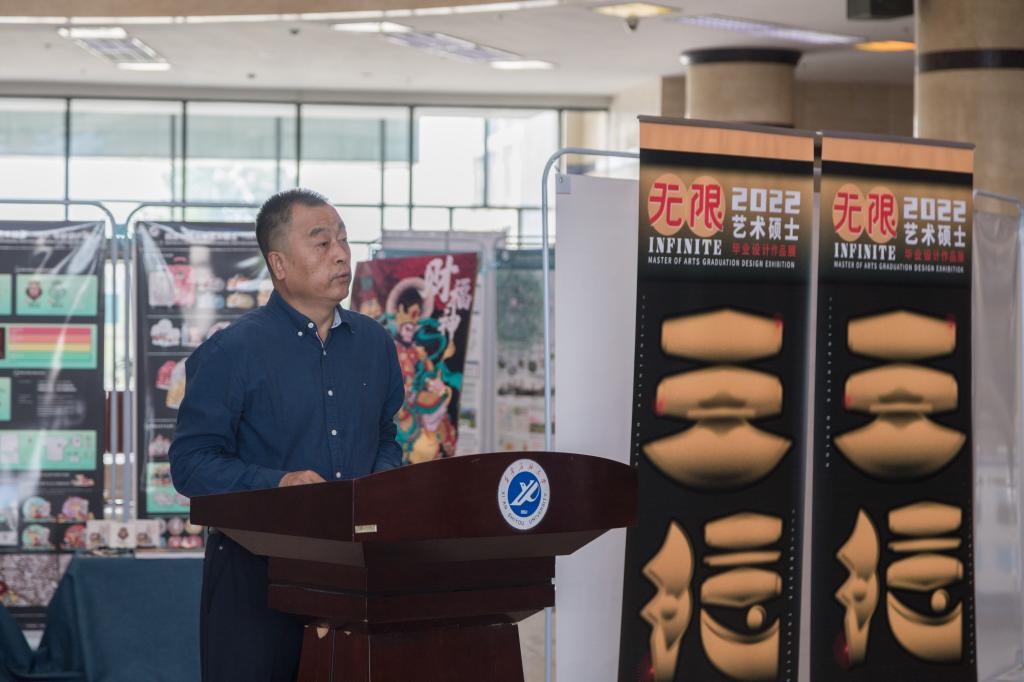 人文学院艺术硕士研究生导师肖雪锋教授代表研究生导师发言。她说,同学们用艺术设计的表现手法诠释着对美的理解和当下社会问题的关注,参展的每件作品都承载着同学们的理想和希望,每件作品背后都凝聚着各位导师和同学们的辛勤汗水、不懈努力与执着追求,希望各位同学前程似锦,努力开启属于自己的美好明天。