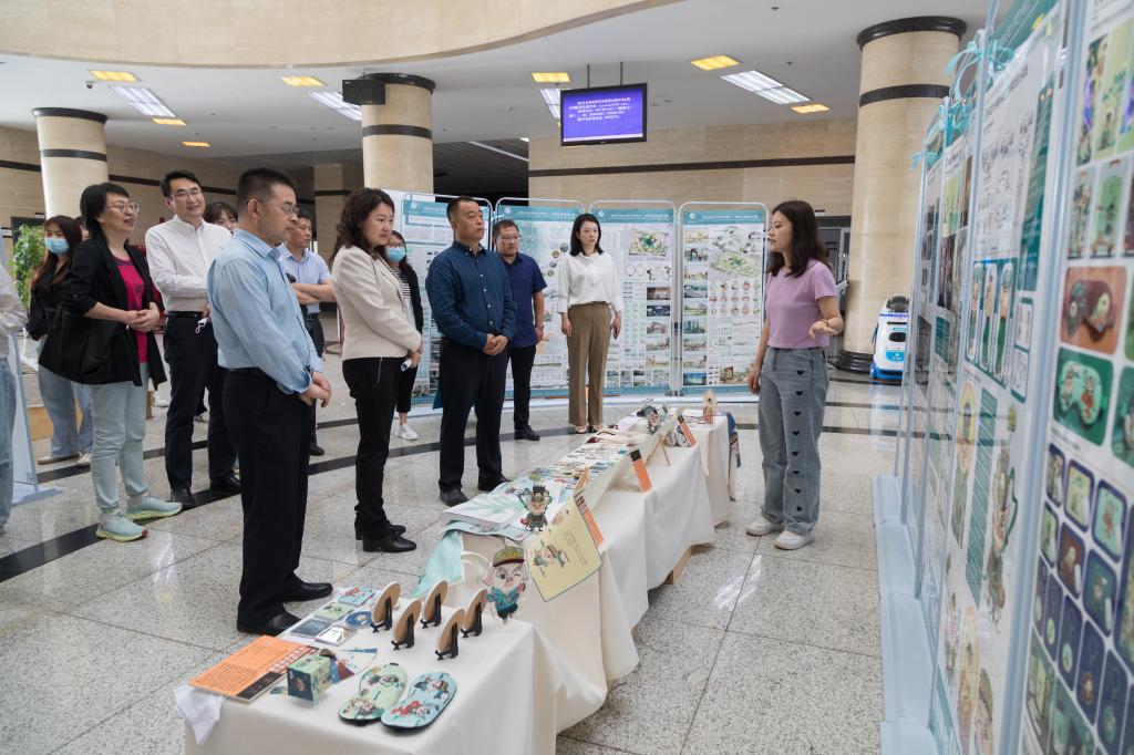 同学们在各自展位前向与会领导详细介绍了自己的创作理念和研究方法,从设计角度探索开展能源矿区景观活化再生设计、非物质文化遗产保护与传承、民俗民艺拓展应用等实践研究工作,得到了大家的肯定和赞扬。