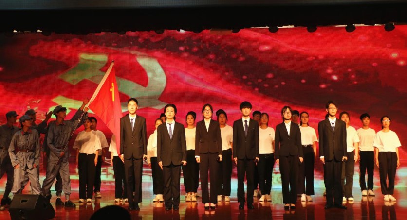 表彰大会结束后,与会人员一起观看了“不负韶华,强国有我”青春诗会。本次诗会将不同时期的爱国主义经典诗作与部分原创内容有机结合,按照时间的脉络分为“革命理想高于天”“改革建设动天地”“时代征程起宏图”三大篇章。在第一篇章,《不朽》《吹号者》等作品鲜明生动地展现出新民主主义革命时期,中国共产党和人民军队的崇高革命理想与坚定革命信念,表达出不怕牺牲、敢于胜利的无产阶级革命乐观主义精神。在第二篇章,《祖国的春风》《盛世中国》等作品集中展现了改革开放和社会主义现代化建设时期,党领导全国各族人民在中国特色社会主义建设中取得的伟大成就。在第三篇章,《石油时代赞歌》《新时代我们永远在路上》《北京冬奥颂》等作品集中展现了党的十八大以来,以习近平同志为核心的党中央领导广大青年投身全面建成小康社会、全面建设社会主义现代化国家的伟大历史进程。