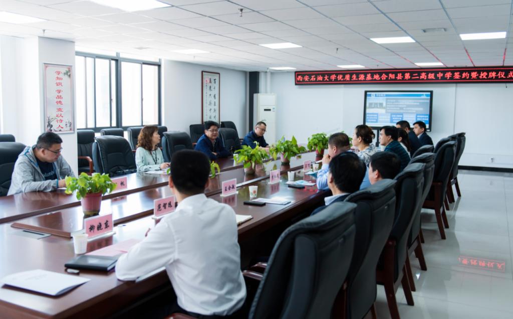 王改代表县委、县政府对樊晓民一行的来访表示欢迎,对西安石油大学建立“优秀生源基地”,带动合阳教育事业发展表示感谢。她希望学校以此为契机,加大与西安石油大学的合作交流,努力探索构建多渠道、多层次交流合作的长效机制和生源质量监控体系,为高校培养更多优秀生源,努力办好人民满意的教育。随后,范智远详细介绍了合阳县第二高级中学的发展历程、办学特色和教学成果,并希望两校以后能够保持常态化的对接,能够在学生的专业选择、研学活动、心理辅导等方面实现合作共赢。
