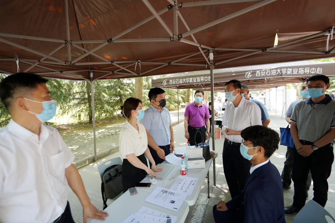 6月1日上午,由陕西省人力资源和社会保障厅、陕西省国有资产监督管理委员会、陕西广电融媒体集团主办,陕西省人才交流服务中心、西安石油大学承办的“公共就业服务进校园——省属国企稳就业高校毕业生专项招聘会”在我校鄠邑校区举行,陕西延长石油集团、陕煤彬长煤矿、西北有色集团713总队有限公司等18家省内重点企业参会。陕西省人力资源和社会保障厅副厅长井海滨、就业促进处处长王晓龙、陕西省人才交流服务中心毕业生部部长李阳莅临现场视察指导工作。校党委副书记张木、相关职能部门负责同志现场陪同。