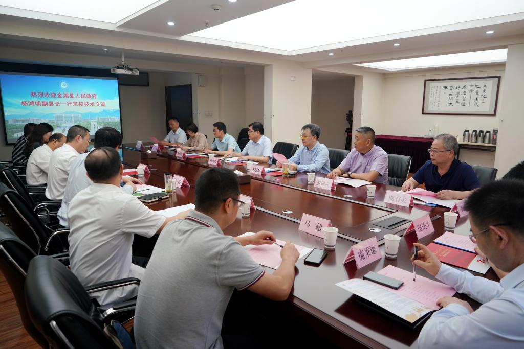 6月2日上午,江苏省淮安市金湖县人民政府杨鸿明副县长一行来校访问,我校副校长张荣军出席会议。座谈会在明德校区第一会议室召开,学校科技处处长张益主持会议。