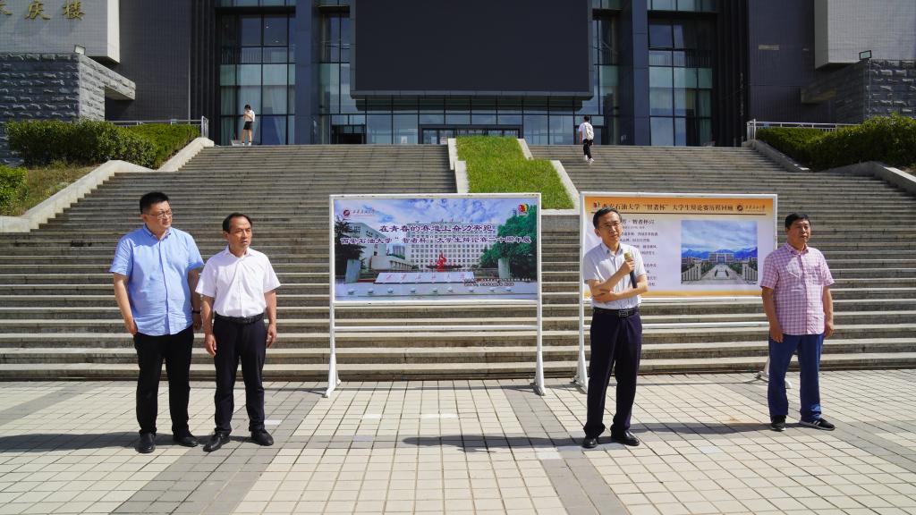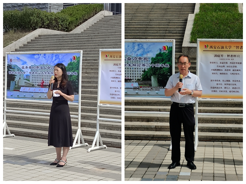 为进一步贯彻落实习近平总书记在学校思想政治理论课教师座谈会上的重要讲话精神和习近平总书记在中国人民大学考察时的重要讲话精神,充分发挥“智者杯”大学生辩论赛在大学生思想政治教育和思政课育人中的作用,将立德树人根本任务走实走深,6月6日上午,我校在鄠邑校区图书馆南广场举行“在青春的赛道上奋力奔跑——西安石油大学‘智者杯’大学生辩论赛二十周年展”。校党委副书记张木出席活动并讲话。党委宣传部、学生工作部、教务处和马克思主义学院负责人,各院(系)党委副书记、思政课教师代表、学生代表参加活动,活动由马克思主义学院党总支书记张伟主持。