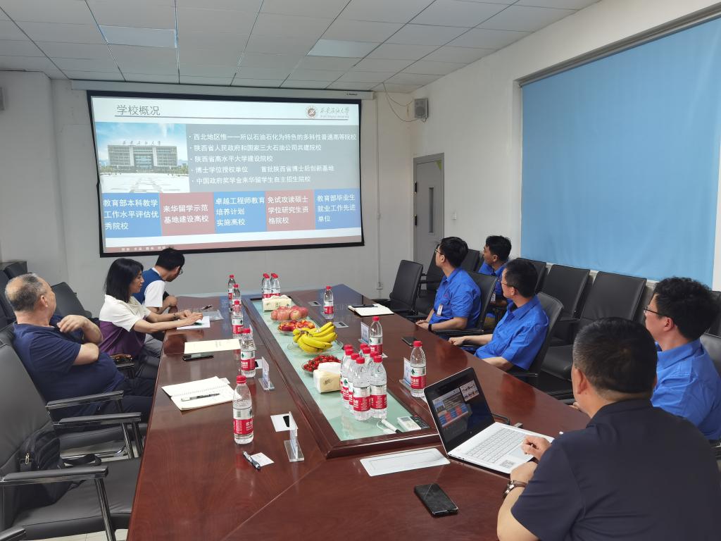 陈军斌简要介绍了我校的发展历程和学校本硕专业学生培养特色,向企业领导推荐学校相关专业毕业生就业。希望双方进一步深化拓展合作领域,在项目转化、产品研发、人才培养、就业基地建设等方面加强合作,深度落实教科产学研用合作,共同贯彻落实习近平总书记来陕考察重要讲话重要指示精神和习近平总书记关于就业工作的重要指示精神,以优异成绩迎接党的二十大胜利召开。