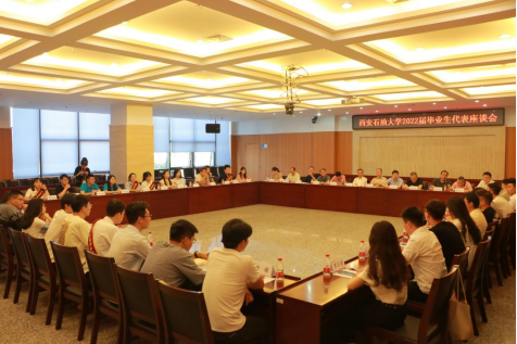 6月24日上午,2022届毕业生代表座谈会在我校鄠邑校区图书馆第一会议室召开。校党委副书记张木、副校长陈军斌,党政办、学工部、研工部、保卫处、校团委、教务处、实验室管理处、后勤处、高评中心、图书馆等部门负责人以及来自各学院的2022届本科生、研究生代表参加了座谈会。