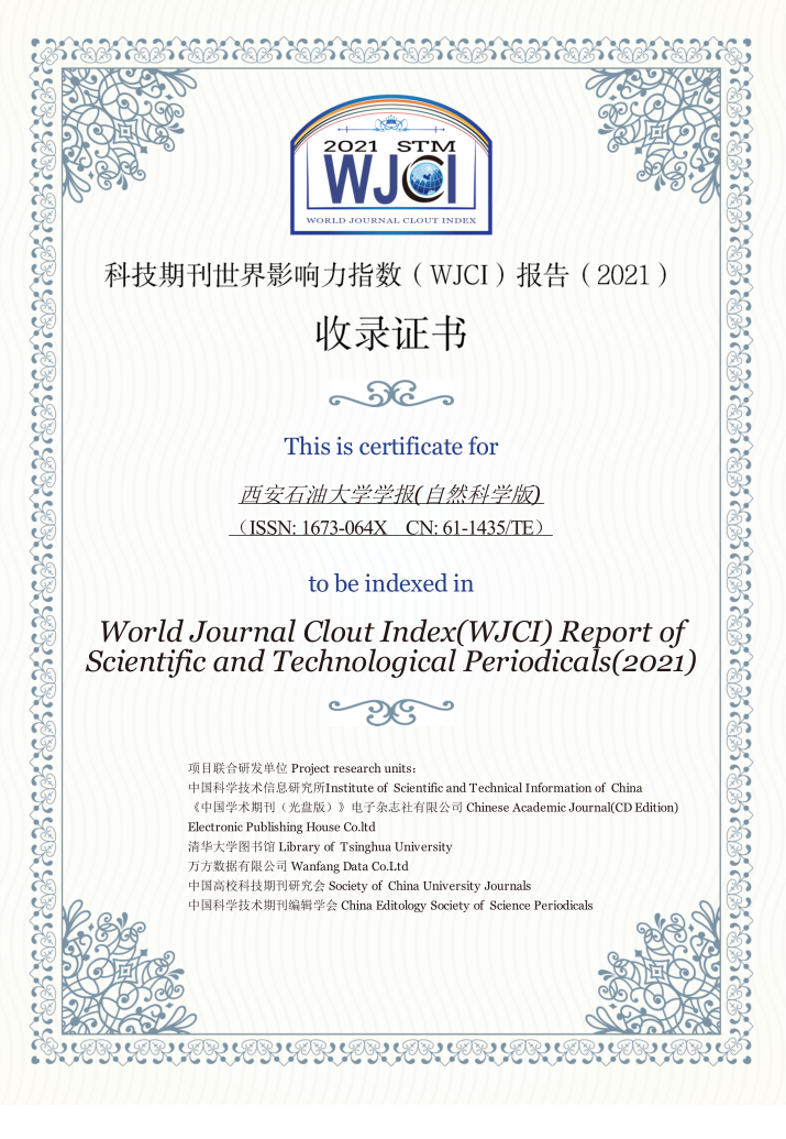 另外,《西安石油大学学报(自然科学版)》继续入选《科技期刊世界影响力指数(WJCI)报告(2021)》,WJCI值为0.582,期刊影响力和竞争力稳步提升,本刊编辑部将继续坚持高质量办刊宗旨,开拓创新,不断提高期刊质量。