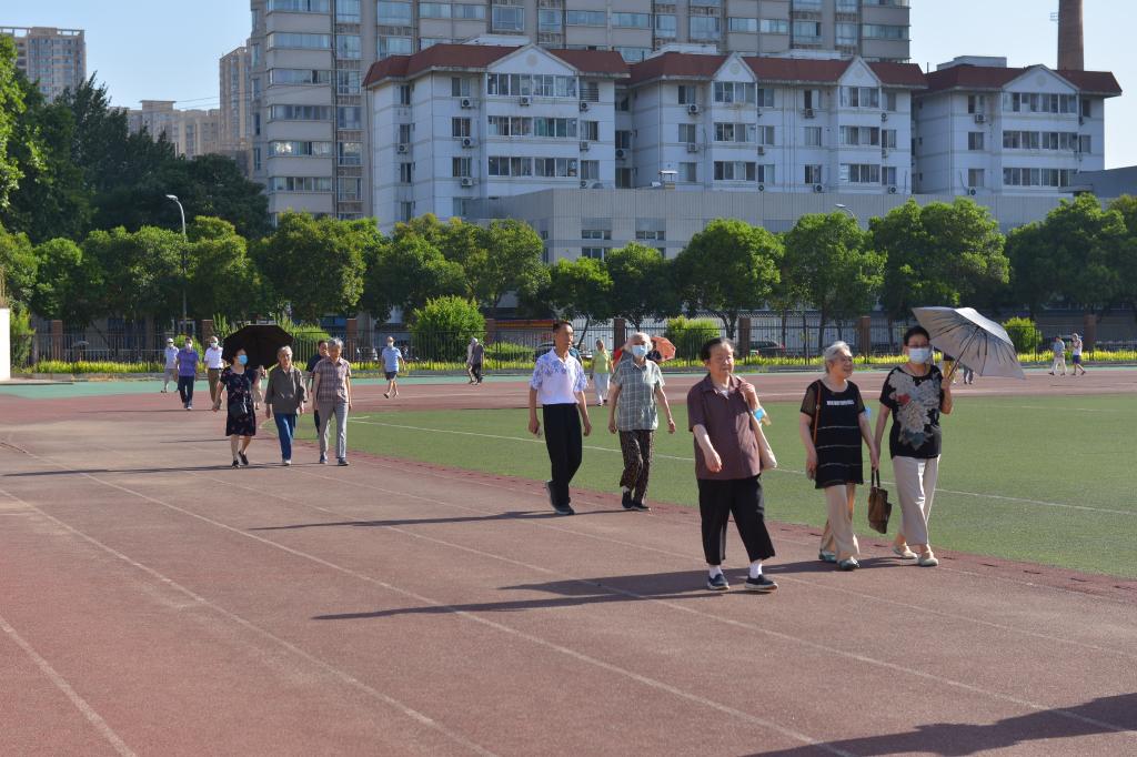 离退休党总支书记李渊在开幕式上致辞,离退休工作处处长夏玮宣布健步走活动开始。考虑到天气炎热,老党员健步走活动因人而异,量力而行,自己设定健步走任务。尽管很多老同志年事已高,腿脚不是很灵活,但是大家精神抖擞,遵守疫情防疫规定,保持着社交距离,向着终点努力进发,心情愉悦地完成了当日的行走任务。