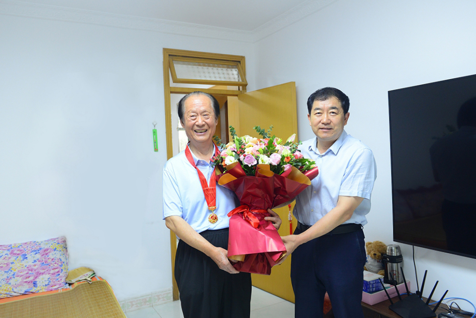 校长李天太先后走访慰问了左良庆、曹惠珍两位离退休老党员。李天太为他们佩戴了“光荣在党50年”纪念章,仔细询问了左老师和曹老师的生活情况,倾听他们讲述在校期间的奋斗历史。李天太谈到,光荣在党50年的人生历程,是回顾过去、不忘初心的总结铭记和誓言重温,也是牢记使命、勇毅前行、开启新征程的再次起航。他希望两位老同志能够保重身体,继续关注、关心学校的发展,为学校长远发展提供宝贵的智力支持。