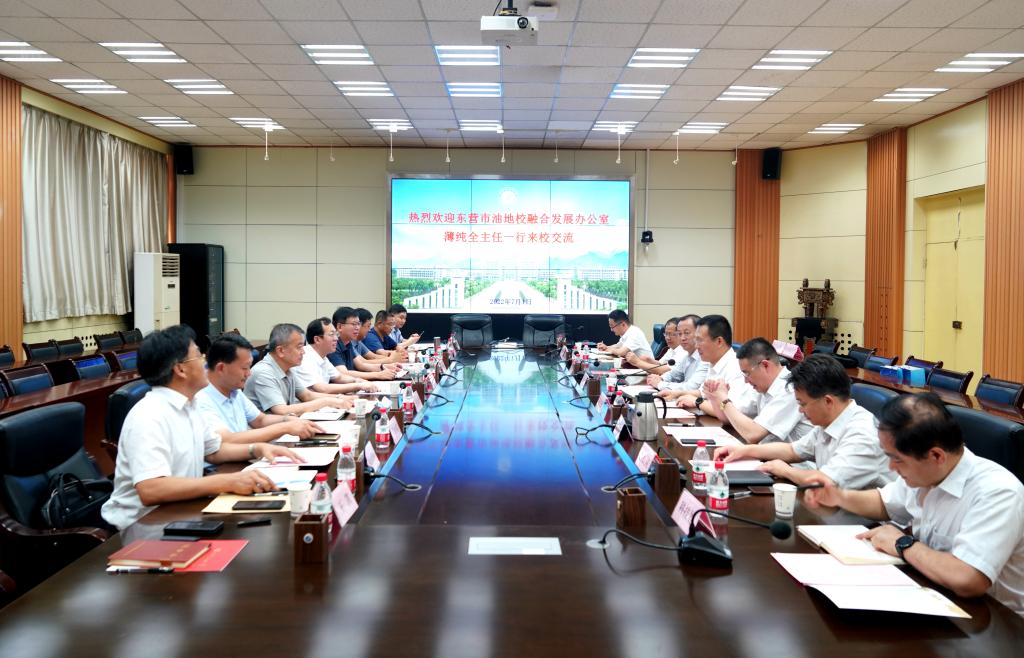 薄纯全对学校提供的交流机会表示衷心感谢,并介绍了东营市的基本情况和油地校融合发展办公室的主要职能。他希望,双方发挥好各自优势和特色,围绕东营市“5+2+2”产业体系,在能源化工、装备制造和新能源新材料等领域深入开展技术和人才合作,并建立全面、紧密、长期的合作关系,推动校地双方共同发展。