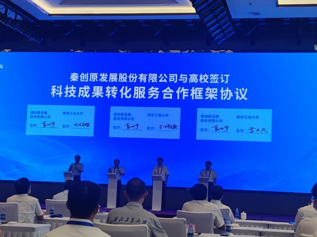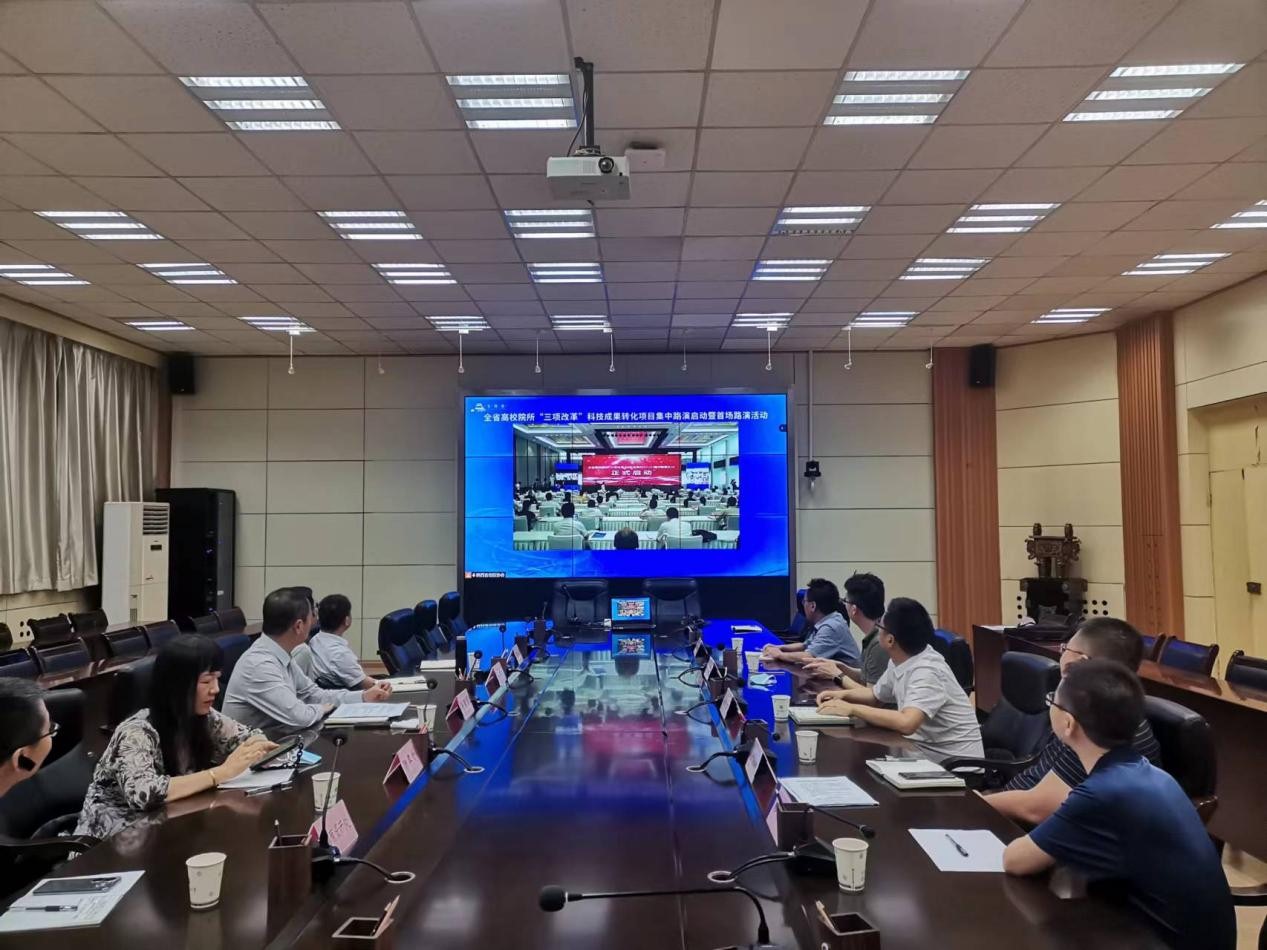 7月13日,全省高校院所“三项改革”科技成果转化项目集中路演启动仪式暨首场路演活动在秦创原创新驱动平台总窗口举办。省长赵一德宣布全省高校院所“三项改革”科技成果转化项目集中路演活动启动。省委常委、常务副省长王晓,省委常委、西安市委书记方红卫出席。我校校长李天太在主会场参加活动,并代表学校与秦创原发展股份有限公司签署科技成果转化服务合作框架协议。我校在雁塔校区会议中心设立分会场,副校长张荣军、相关职能部门负责人和教师代表在分会场参加活动。