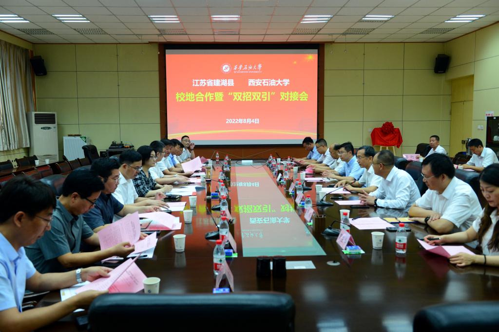 8月4日上午,我校与建湖县校地合作暨“双招双引”对接会在雁塔校区会议中心第一会议室举行。学校党委副书记张木,建湖县委常委、组织部部长、开发区党工委书记孙红,建湖县委组织部副部长、县委党建办主任孙盘桧,建湖县科技局局长、党组书记曾令群,建湖县科技局副局长吕忠东及建湖县有关石油石化企业负责人出席对接会。对接会由党政办公室主任赵健主持。