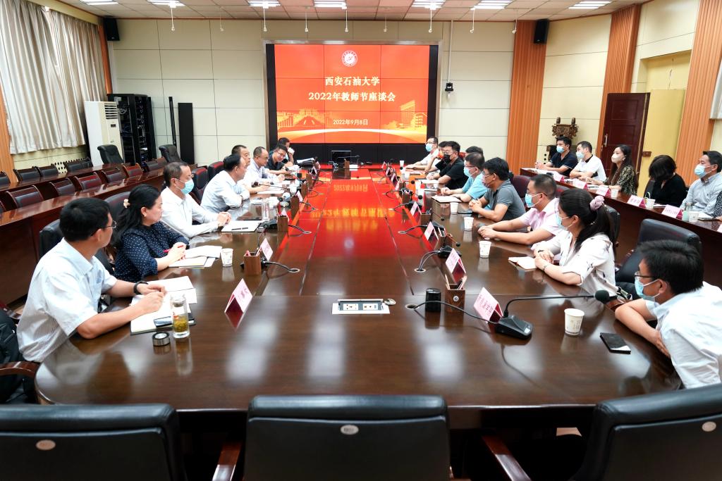 座谈会上,张明、郭峰、南叶飞、樊恒、程嘉瑞、高倩、王彬、唐凌虹、翁光远、丁继军、党绥梅、王岚、黄于瑶、刘西娟、胥山和赵丹宁等教师代表围绕专题视频和陕西省庆祝2022年教师节表彰大会精神先后进行了发言,就习近平总书记关于教育的重要论述、习近平总书记关于教师工作的重要指示批示精神、师德师风建设、教师队伍建设、课程思政与思政课程、“四有”好老师和“四个引路人”等方面畅谈了感想体会。老师们说,作为一名高校教师,要忠于党和人民的教育事业,为党育人、为国育才;要有扎实学识、研究教育教学规律,提高教书育人的本领;要培养人、塑造人、成就人,努力当好学生成长成才的“引路人”;要率先垂范,以模范行为引导学生,做学生为学、为事、为人的“大先生”,以教风带学风、促和谐校风;要刻苦钻研,多出成果、出好成果,服务陕西地方经济社会发展。他们表示,要以实际行动贯彻落实学习贯彻习近平总书记关于教师队伍建设的重要指示批示精神,传承弘扬黄大年等优秀教师的高尚品格,学习优秀教师的先进事迹,进一步坚定理想信念,严以修身、为人师表,爱岗敬业、乐于奉献,为培养社会主义建设者和接班人做贡献。