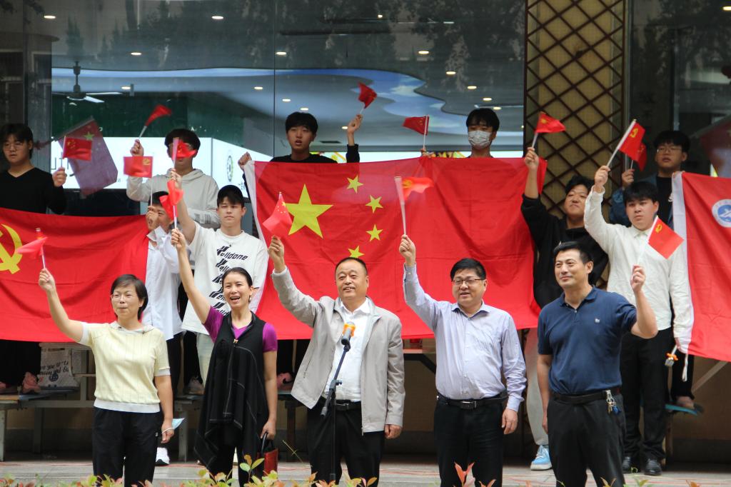 中午12点10分,“红歌快闪”活动正式开始,首先以小合唱的形式演绎了《弹起我心爱的土琵琶》,在优美的旋律中,学生饱含深情地演唱了《把一切献给党》《领航》,用歌声致敬伟大的党、伟大的祖国和伟大的时代。最后师生集体合唱了《辉煌明天》,用歌声抒发心中爱国热忱。活动在师生们“祝祖国母亲生日快乐”的欢呼声中圆满结束。