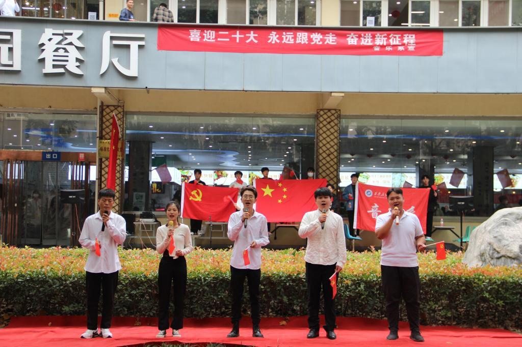 此次“红歌快闪”活动由音乐系主办,宣传部、后勤处协办,是音乐系庆祝国庆喜迎党的二十大系列活动之一。音乐系师生们通过“红歌快闪”这样的新颖形式,唱响了热爱党、热爱祖国、热爱学校、热爱生活的主旋律,喜迎二十大、永远跟党走、奋进新征程。