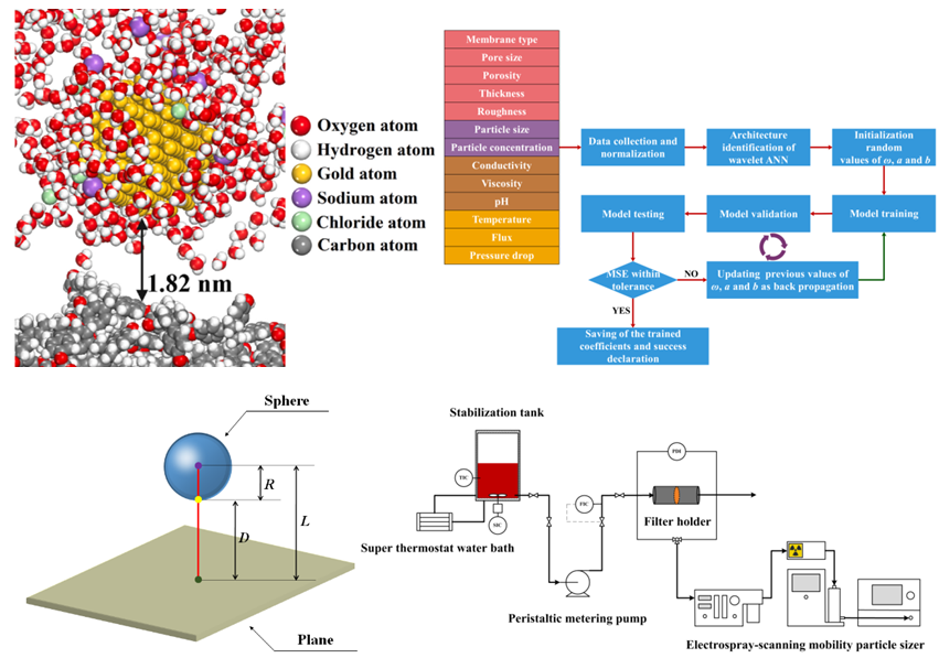 该成果紧密围绕我省集中力量打造的23条重点产业链之一——大规模及超大规模集成电路加工中的核心环节——超净高纯试剂微小纳米颗粒净化展开。在小粒径膜孔比条件下,利用超滤膜与小颗粒间的内生扩散性、静电吸引力有效实现<15nm颗粒的高效捕集,抑制了滤膜上下游逐渐增大的高压差,显著降低过程能量消耗。同时,分析、阐明了诸因素对纳米颗粒截留效率的作用规律和作用、强弱,确定了基于小粒径膜孔比的膜超滤技术未来优化发展方向。此外,以滤膜特征、颗粒性质、溶液特点、操作条件等13个关键参数为输入信号,通过小波人工神经网络建立了<15nm颗粒超滤截留效率预测模型,并与基于经典和扩展DLVO理论的MEDLVO-Maxwell模型进行了对比、分析。结果表明,针对pH变化,小波人工神经网络模型预测值与MEDLVO-Maxwell模型计算结果高度一致,且小波人工神经网络模型更加强大、便捷,可以快速、准确地预测极端条件下膜超滤过程的纳米颗粒截留效果。该工作有效解决了半导体、芯片、硅晶圆片表面清洗、刻蚀等生产过程的“卡脖子”问题,为超滤技术在我省乃至全国超净高纯试剂生产中的大范围推广提供了切实可行的解决途径,为大规模及超大规模集成电路加工提供了基本条件,促进智能制造的可持续发展。