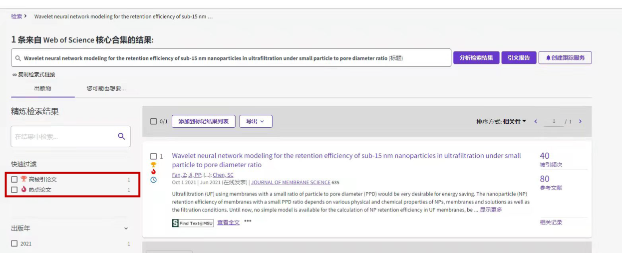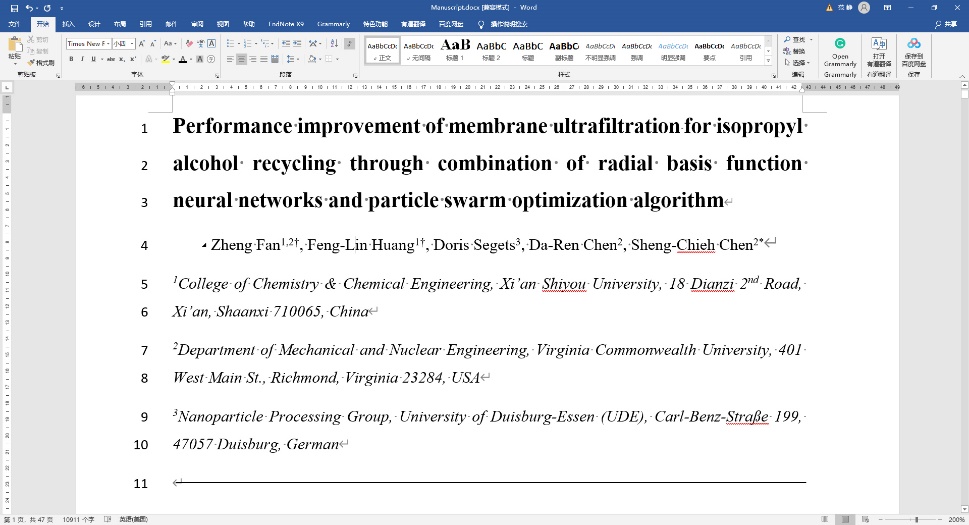 在上述研究基础上,该科研团队的最新研究成果和论文《Performance improvement of membrane ultrafiltration for isopropyl alcohol recycling through combination of radial basis function neural networks and particle swarm optimization algorithm》也已通过《Journal of Membrane Science》审稿和录用,预计将于明年正式发表。