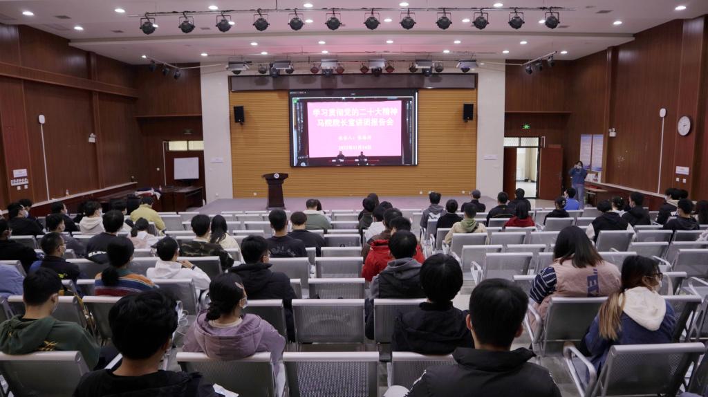 雷西合在主持报告会时指出,报告主题鲜明、内容充实、准确深刻,政治性、思想性、针对性、指导性强,对全面学习把握党的二十大精神是一次深入辅导和有力推动。他强调,学习好、宣传好、贯彻好党的二十大精神是学校当前和今后一个时期的首要政治任务。广大师生要落实习近平总书记“三个全面”的总体要求,在全面学习、全面把握、全面落实上下功夫。一要进一步提高政治站位,原原本本学习研读党的二十大报告和新修订的党章,准确领会精神实质和核心要义,深刻领悟“两个确立”的决定性意义,增强“四个意识”、坚定“四个自信”、做到“两个维护”。二要坚定理想信念,勇挑时代重担,珍惜美好时光,练就过硬本领,既怀抱梦想又脚踏实地,学用结合、知行合一,把个人理想追求融入民族复兴伟大征程。三要注重发挥优势,思政队伍、学工干部和师生党员要充分发挥专业优势、工作优势和生活优势,做好党的二十大精神的宣传宣讲工作,坚定推动学习宣传贯彻党的二十大精神走深走实,见行见效,助力学校各项事业高质量发展。