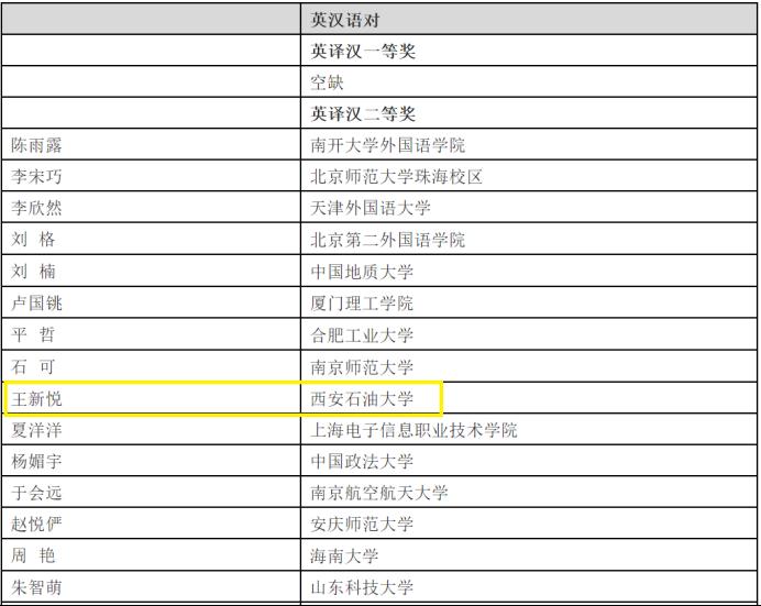 近日,第三十四届韩素音国际翻译大赛获奖名单揭晓,我校外国语学院2021级翻译硕士研究生王新悦同学分别获英译汉二等奖、汉译英优秀奖。