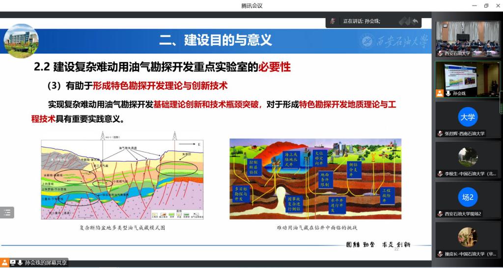12月4日,受教育部科技与信息化司委托,陕西省教育厅组织9名专家对我校“复杂难动用油气勘探开发”教育部重点实验室的建设计划进行了可行性论证,会议采取“线上+线下”相结合的形式召开。省教育厅副厅长高岭、科技处处长朱晓冬;我校党委书记赛云秀,实验室主任、校长李天太,副校长李华、程永清、张荣军,总会计师樊晓民,实验室学术带头人、学术骨干以及学校相关单位负责人参加了会议。会议由朱晓冬主持。
