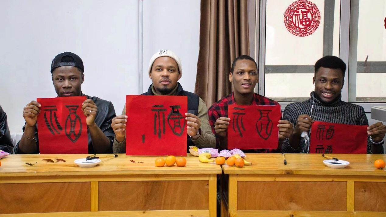 活动现场,除了学习书写“福”字,留学生还准备了各具特色的歌舞节目。来自俄罗斯的爱丽同学为大家倾情献唱中文歌曲“人间”,阿尤娜同学为大家表演了印度舞蹈“游子回家”,来自赤道几内亚的诺一同学为大家献上了非洲传统舞蹈Afro-Dance,现场展现出校园多元文化、师生共庆中国新春喜气祥和的氛围。