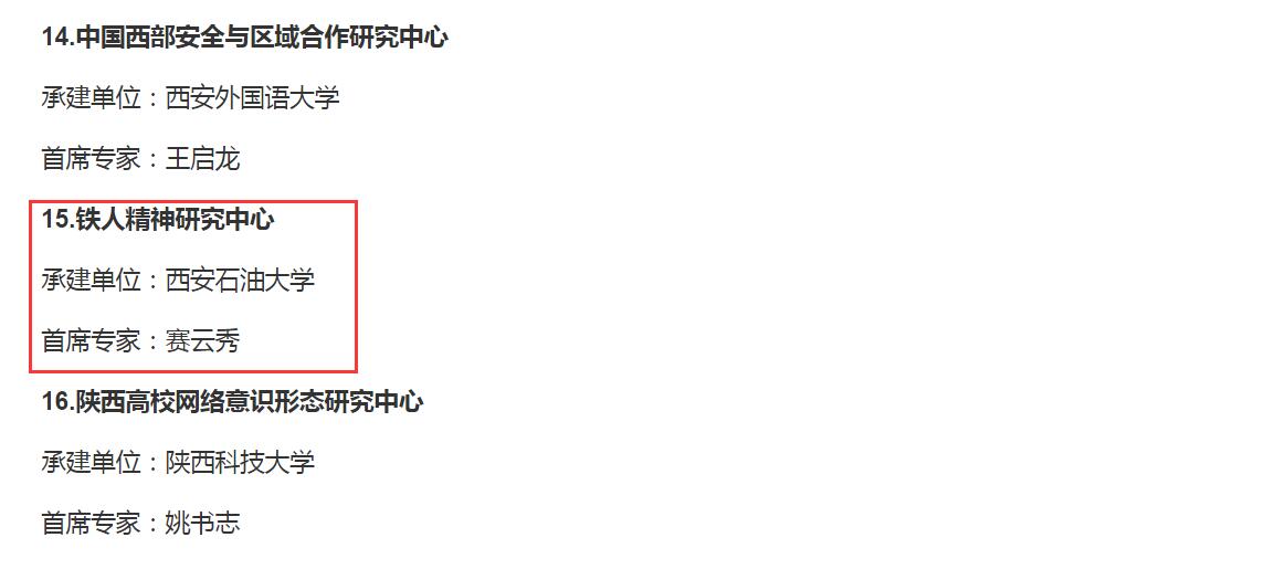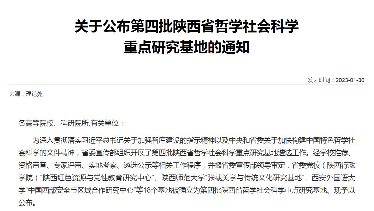 近日,省委宣传部发布了《关于公布第四批陕西省哲学社会科学重点研究基地的通知》,我校马克思主义学院牵头申报的“铁人精神研究中心”被确立为第四批陕西省哲学社会科学重点研究基地。