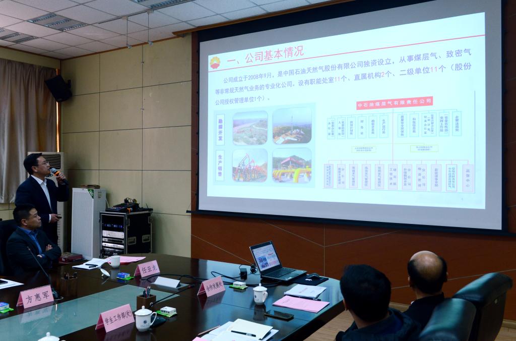 副总经理、总地质师熊先钺从历史沿革、员工状况、开发历程、贡献荣誉以及企业文化、科技、人才等方面对煤层气公司基本情况进行了介绍,希望通过此次合作交流,双方单位发挥各自优势,做大、做强、做优科研攻关,推动企校共同发展。