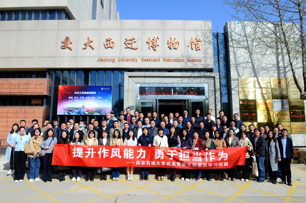 为进一步加强党支部组织建设,提升支部委员的工作能力和水平,巩固拓展学校作风建设专项行动成果,助力作风能力提升年活动有效推进,机关党委决定在完成党支部换届工作的基础上,对机关全体党委委员、党总支委员、党支部委员进行一次全面培训。3月13日下午,机关党委组织支部委员90余人赴西安交通大学西迁博物馆参观学习。