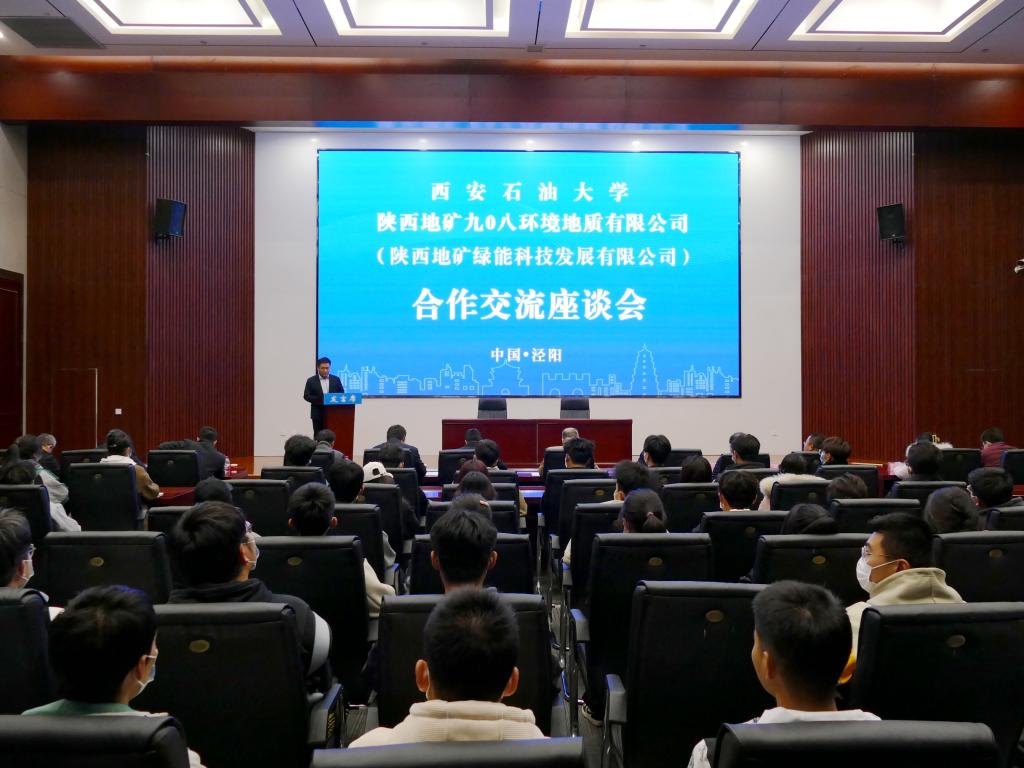 为进一步加强学校实习实训基地建设和校企合作,拓宽大学生就业渠道,3月18日下午,副校长陈军斌带队前往秦创原·泾阳创新实践服务中心,与陕西地矿九〇八环境地质有限公司(陕西地矿绿能科技发展有限公司)开展合作交流座谈,签署“实践教学基地”合作协议并举行挂牌仪式。实验室管理处、新能源学院相关负责人和教师代表及70余名参加认识实习的学生共同参加活动。泾阳县委常委、组织部部长孙彦彬,陕西地矿集团有限公司总工程师马思锦、地质科技部主任张文峰,九〇八公司党委书记、执行董事、总经理王康,九〇八公司党委委员、总工程师畅俊斌,九〇八公司党委委员、副总经理沈春强等出席活动。