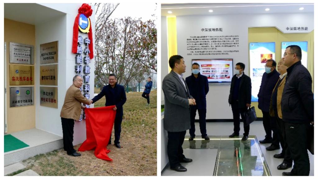 随后,陈军斌一行赴泾阳临空科创园参观浅层地热能利用示范项目,并与马思锦共同为西安石油大学实践教学基地揭牌。沈春强详细介绍了项目投资、实施情况、资源分布储量以及项目开发前景等。