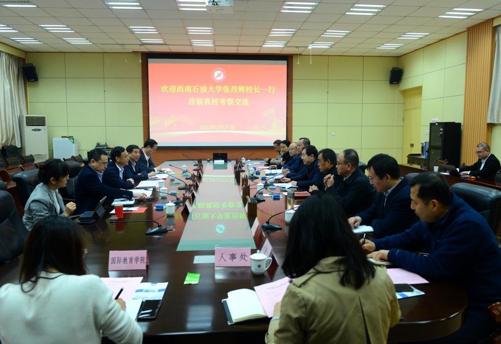 张烈辉对我校的热情接待表示感谢,简要介绍了西南石油大学的基本情况。他表示,希望通过此次调研座谈,不断巩固加深两校的友谊,取长补短,推进两校实现更好更快发展。