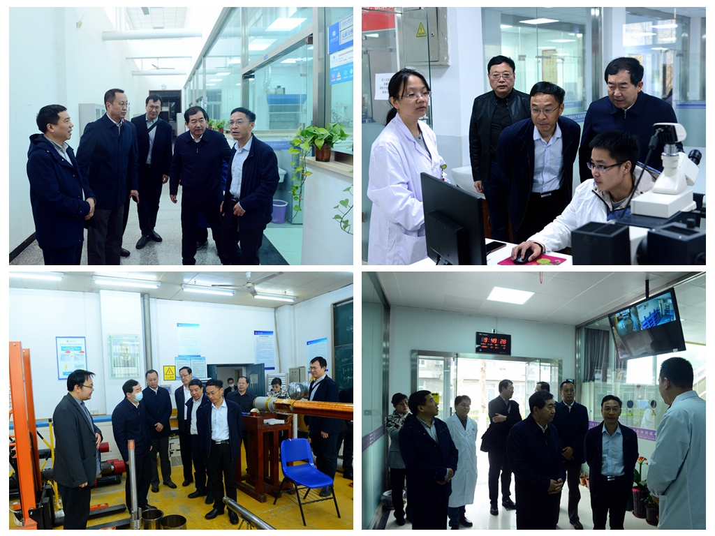 张烈辉一行实地参观了陕西省油气田特种增产技术重点实验室、陕西省油气成藏地质学重点实验室、陕西省油气井测控技术重点实验室以及现代分析检测中心等科研基地。