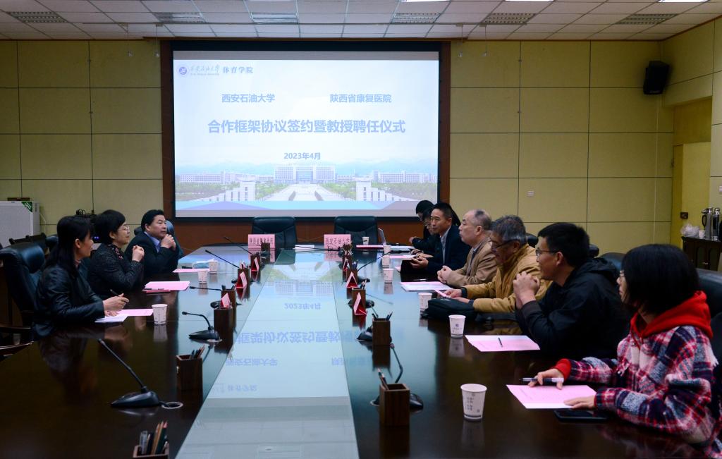 陕西省康复医院教学科主任田亚峰,我校体育学院党总支书记倪振文,体育学院各教研室、实验室、办公室负责人参加座谈。