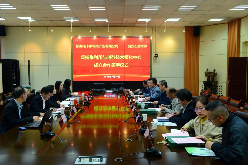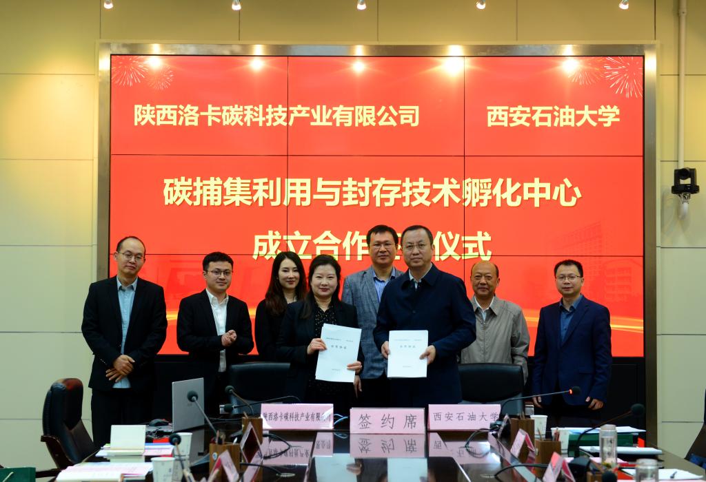 5月10日上午,我校与陕西洛卡碳科技产业有限公司在雁塔校区会议中心第二会议室举行“碳捕集利用与封存技术(CCUS)孵化中心”合作协议签约仪式。陕西洛卡碳科技产业有限公司董事长侯静云、总经理蔡闽琦、副总经理姜安定,我校副校长张荣军出席会议。会议由科技处处长张益主持。