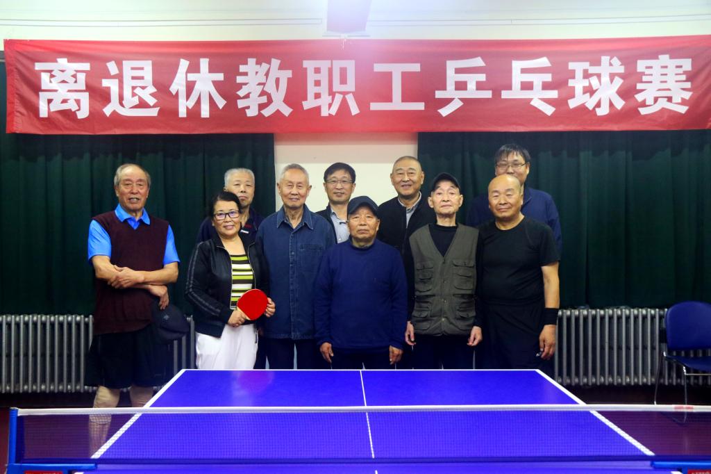 调研结束后,苏文甫为离退休教职工乒乓球比赛的获奖者颁奖并合影留念。