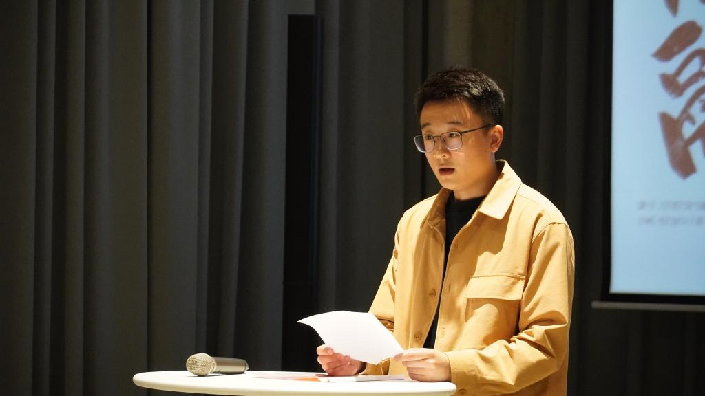 人文学院2023届艺术硕士研究生毕中泽作为学生代表发言。他首先代表17位即将毕业的研究生感谢学校领导和相关职能部门提供的展示平台,本次展览是同学们在深入学习中国传统文化、关注现实生活、探寻艺术规律的基础上,将艺术与技术融合思考转化为设计实践的一次综合尝试,反映出同学们时刻关注社会、服务社会的创作初心。