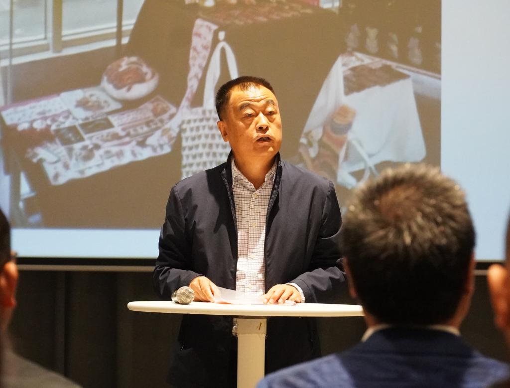 魏勇代表本届艺术硕士毕业设计作品展协办方西安山灰艺术社区发言。他首先代表山灰艺术社区向参加本次展览开幕式的嘉宾与师生表示感谢,山灰艺术社区希望通过搭建展览平台,为我校师生提供良好的学习交流空间,增加艺术氛围和活力,他表示未来将一如既往支持我校艺术展览和学术交流活动,更好地促进彼此间的合作。