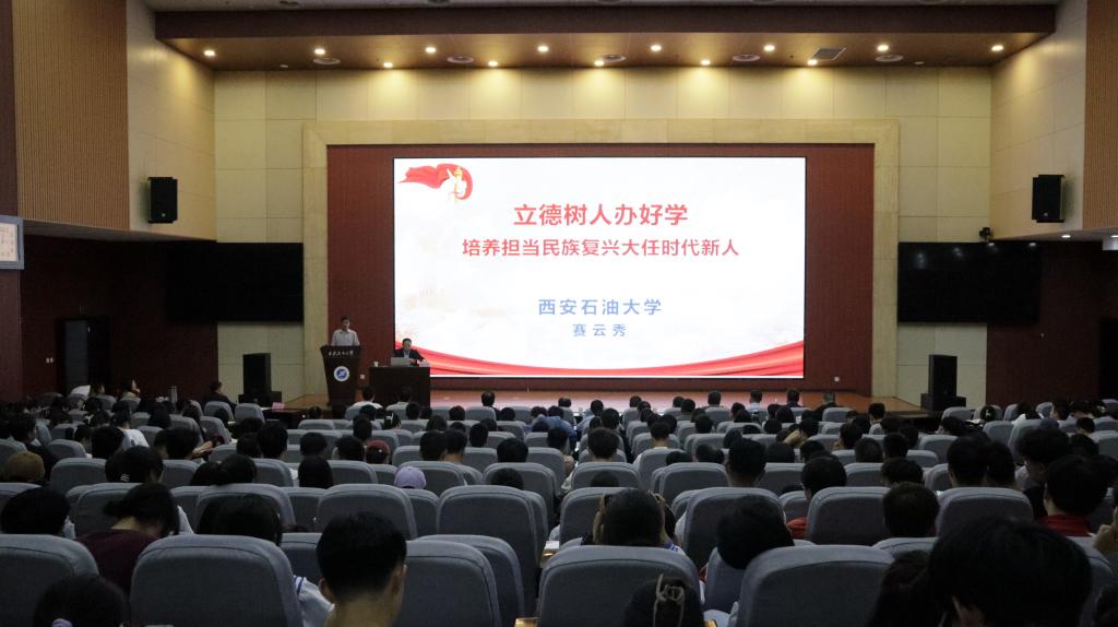 6月1日下午,学校在鄠邑校区弘石学术报告厅举行校领导讲授学习贯彻习近平新时代中国特色社会主义思想主题教育专题党课活动,校党委书记赛云秀为研究生党员讲授了题为《立德树人办好学 培养担当民族复兴大任时代新人》的专题党课。专题党课由副校长苏文甫主持。
