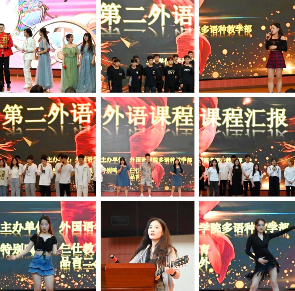 本次课程汇报在外国语学院多语种教学部教师们的精心组织和全校学习7种第二外语同学们的积极编排下,为全校师生带来了一场国际化多语种的视听盛宴,有效展现了我校第二外语的教学成果。汇报会上,多语种教学部全体教师上台与观众见面,介绍学校第二外语人才培养理念、课程开设情况与学生学习情况。