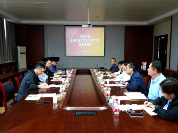 为高标准高质量开展学习贯彻习近平新时代中国特色社会主义思想主题教育,深入落实习近平总书记来陕考察重要讲话重要指示,扎实开展调查研究,5月24日至25日,副校长杨战社率队赴西安理工大学、西安工业大学走访调研,分别与西安理工大学土木建筑工程学院党委书记赵钦,西安工业大学建筑工程学院党委书记刘慧萍、院长黄华等领导进行交流座谈。