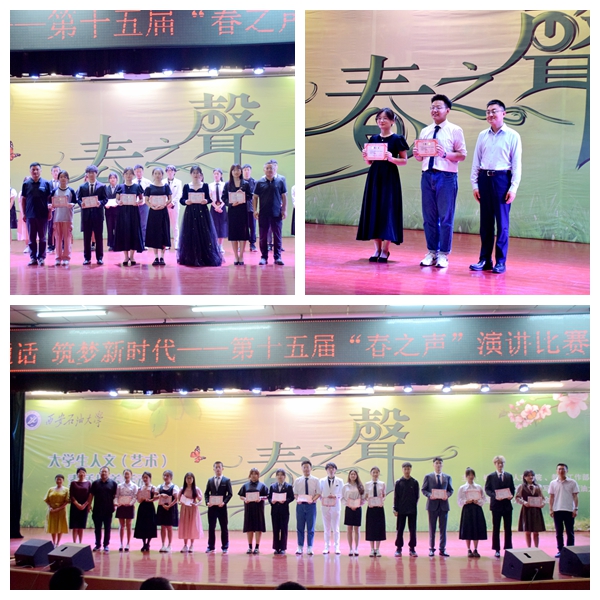 6月12日晚,由校团委、人文学院、教师工作部主办,陕西省中华经典诵写讲西安石油大学基地、校学生会承办的第十五届“春之声”演讲比赛总决赛在鄠邑校区腾辉大学生活动中心成功举办。教师工作部、校团委、教务处、人文学院负责人以及中文系教师代表出席了本次比赛。