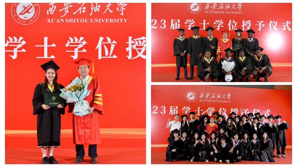 在授位仪式上,陈军斌宣读了《西安石油大学关于授予蒋诗谱等4215名学生学士学位的决议》,授予3988名2023届普通高等教育本科毕业生学士学位,授予42名2023届国际学生学士学位,授予171名2022届、2023届成人高等教育本科毕业生学士学位,授予14名2022届结业生学士学位。