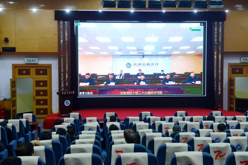 2月20日至24日,我校在雁塔校区和鄠邑校区同时设置分会场,同步组织参加由省委教育工委主办的全省高校领导干部学习贯彻党的二十大精神专题学习班,学校全体校领导、处级干部参加培训。省委教育工委书记、省教育厅厅长刘建林作开班动员讲话,省委教育工委副书记陈乃霞主持开班式并作总结讲话,省委教育工委委员、省教育厅副厅长王海波主持结业式。